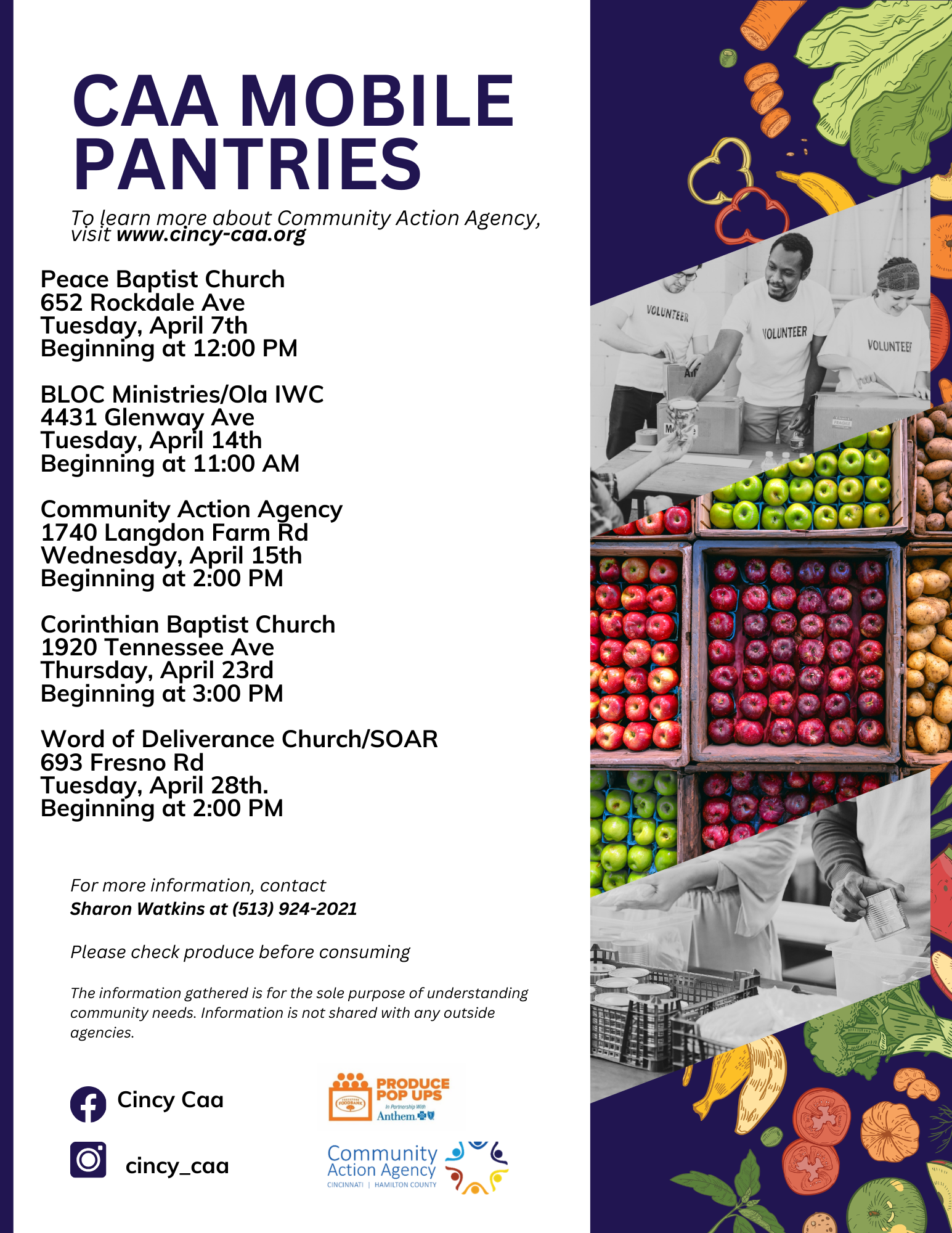 CAA Mobile Pantries will be serving multiple locations across Cincinnati this April, providing access to fresh, healthy food for individuals and families in need.